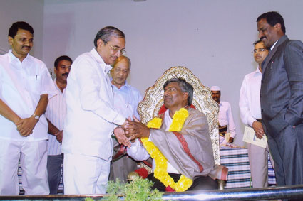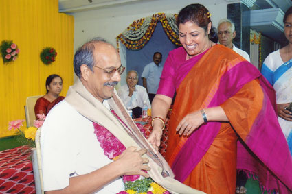 Dr.K.Sadasiva Rao eminent surgeon falicitating Smt.Ramadevi Hon.Governor of Karnataka |