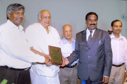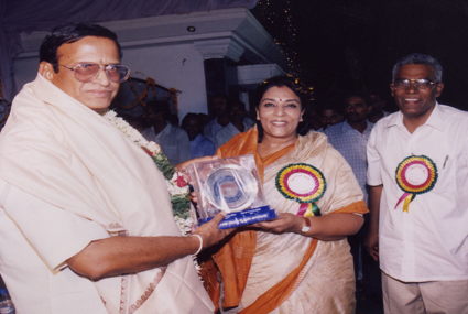 Sri.Kandimalla Srinivasa Rao who donated 20 lakhs in the name of his mother, Kanakamma being falicitated by Dr.Basavapunniah Ex-president, also seen Sri.Y.V.Rao Ex.Mp |