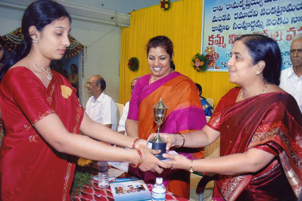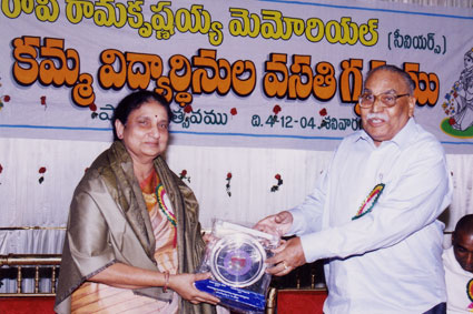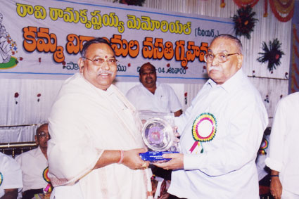 Dr.k.Basavapunniah who was instrumental in purchasing of one acre land for samithi and president of samithi for nine years handing over schorlarship to a girl student, also seen Sri.Sambha siva rao comitte member of samithi. |
