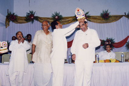 Sri.Kavuri Prasad Rao who donated Rs.10 Lakhs for hostel building being felicitated by Sri V.Balaramakrishnayya President of KJSS |