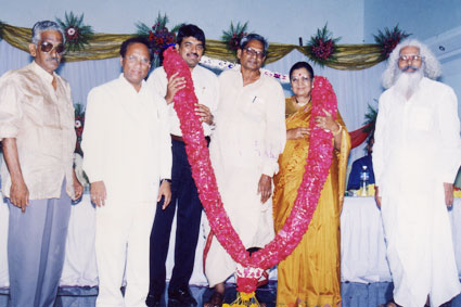 Suddala Ashok Teja is felicitated in presence of sri Ghanta Punniah chowdary, Katragadda Narasimha Rao, & Gopi (Bhashyam Group Educational Institutions) |