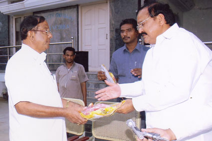 Sri Venkaiah Naidu BJP National President being welcomed by Sri.A.C.H Subha RAo, Hon. Secretary Of Samithi. |