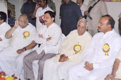 Visit of Sri.Venkaiah Naidu to the Samithi also seen From left A.C.H.Subharao, Hon Sec, V.Balarama Krishiah President, Mandava Prabhakara Rao (donor of Rs.10 Lakhs to the samithi) & G.Punniah Chowdary Treasurer. |