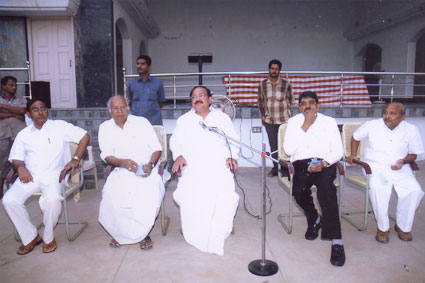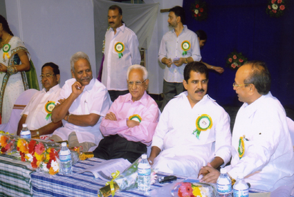 Dr.Rayapati Srinivas MLC, Sri. C.Murali Mohan, (cine artist who donated lakhs of rupees every year to poor students). Dr. G.N Naidu, Regency Ceramics(donor) and Dr.Mullapudi Harischandra Prasad(donor) at a function in samithi. |