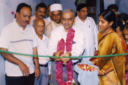 Dr.R.T. Ravi M.D. Crebs Bio chemicals who donated Rs.20 lakhs in the name of his father Sri.Ravi Ramakrishniah, inaugurating the building in the presence of Sri.Katta Subramanya Naidu Hon Minsiter Karnataka state and sri Ghanta punniah chowdary then president of samithi. |